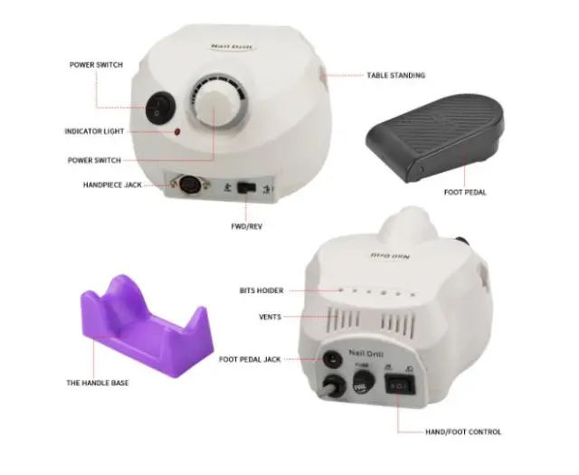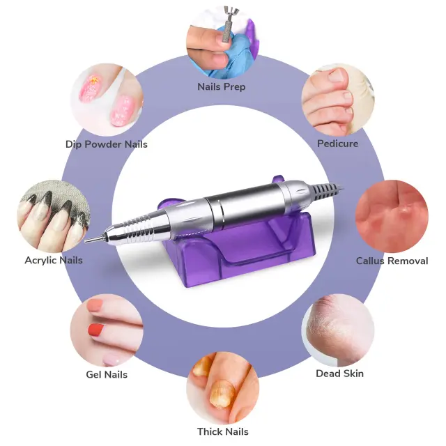 Profesionalna pilica za nohte: Visokokakovostna električna pilica za nohte z različnimi glavami, zasnovana za doseganje različnih učinkov poliranja.