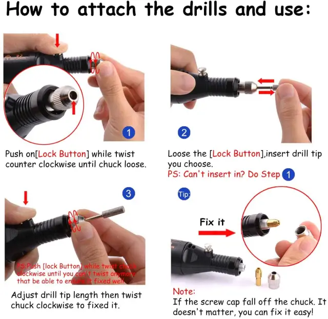 Priloženi dodatki: Majhna gladka električna pilica za nohte, ki vključuje 6 nastavkov in 6 brusnih papirjev. Posebej primeren za akrilno poslikavo nohtov, odličen pa je tudi za druge manikure in pedikure.