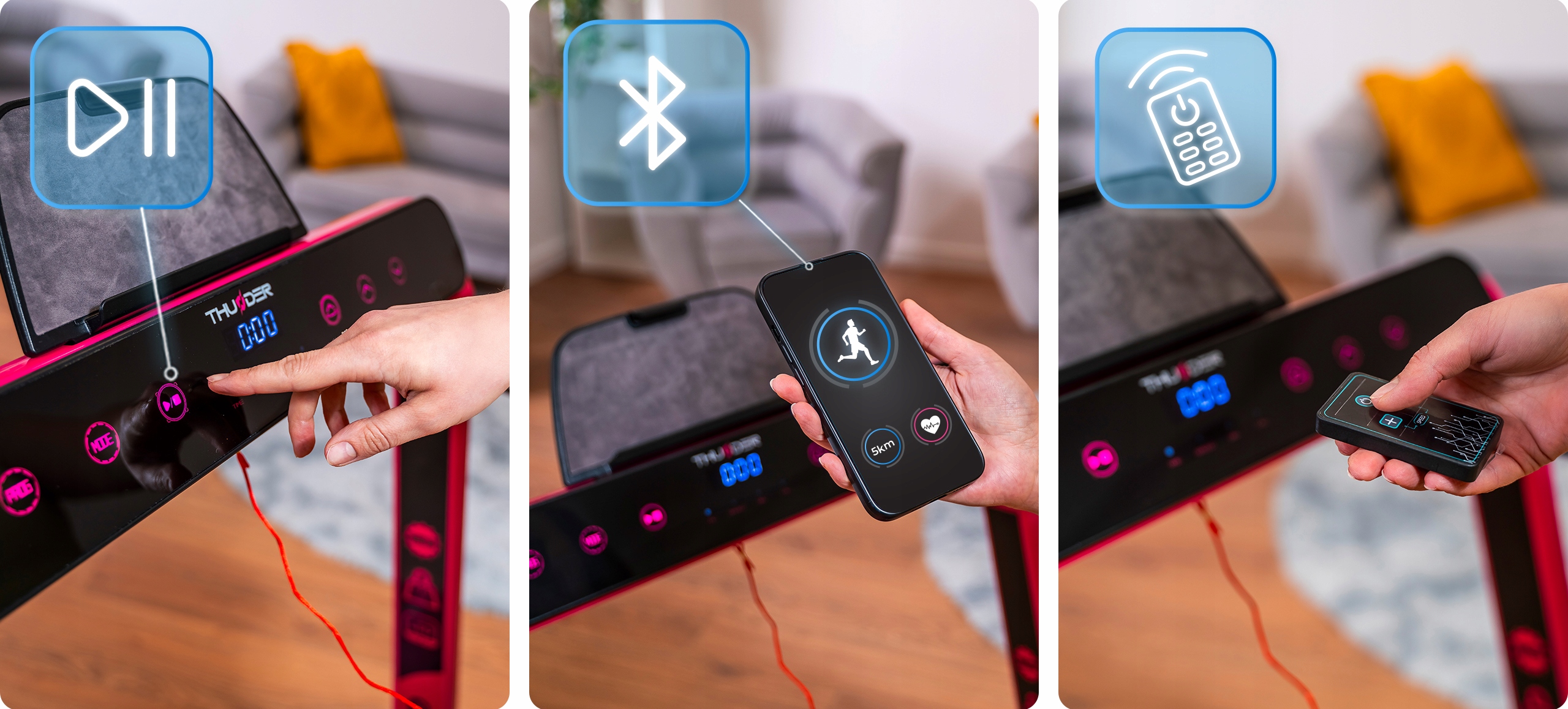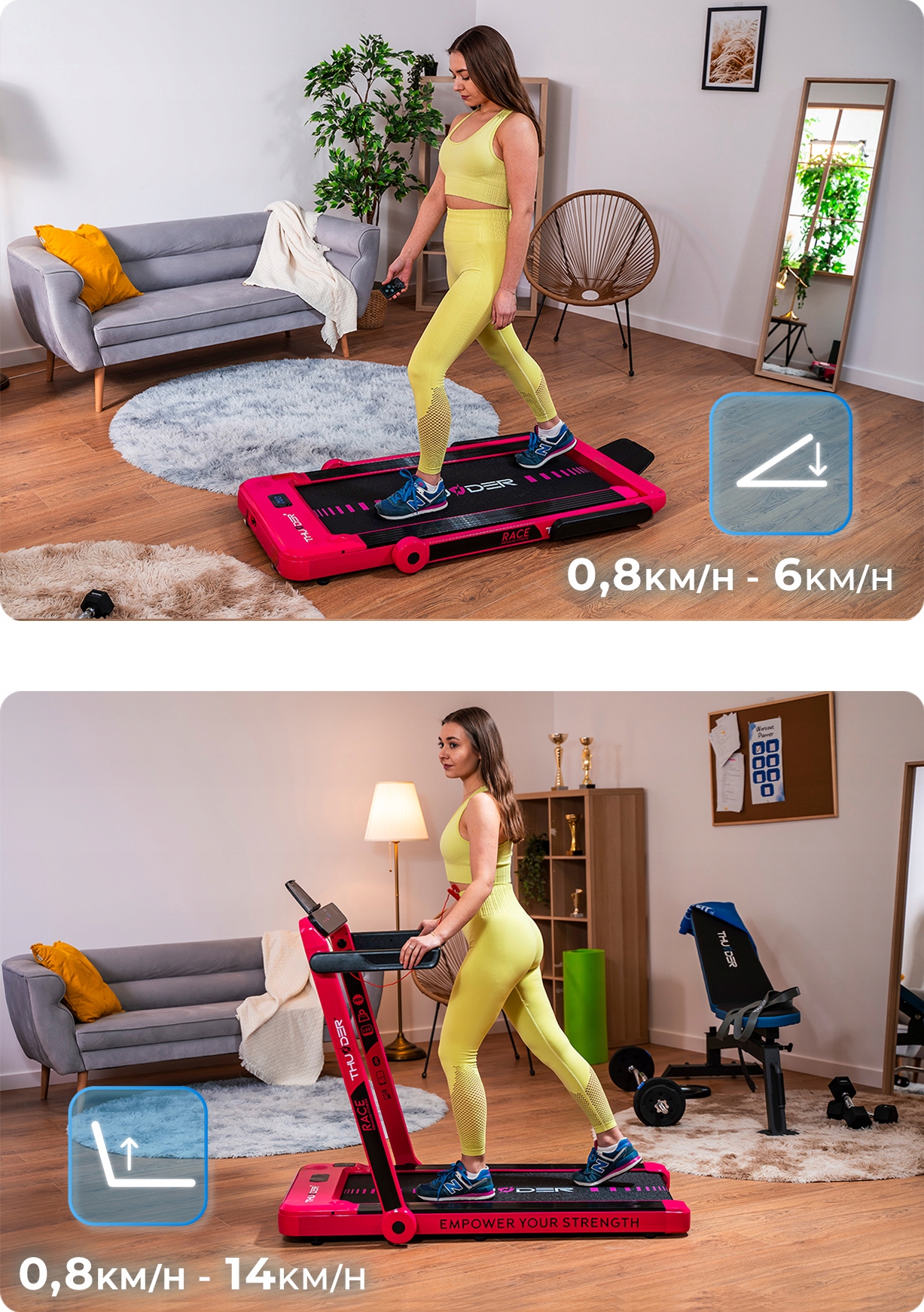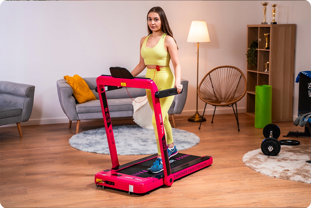 Iščete kompaktno, a hkrati napredno napravo za vadbo doma? Tekalna steza THUNDER RACE-PINK je idealna rešitev, ki združuje udobje, funkcionalnost in sodobne tehnologije ter zagotavlja učinkovito vadbo vsak dan!
