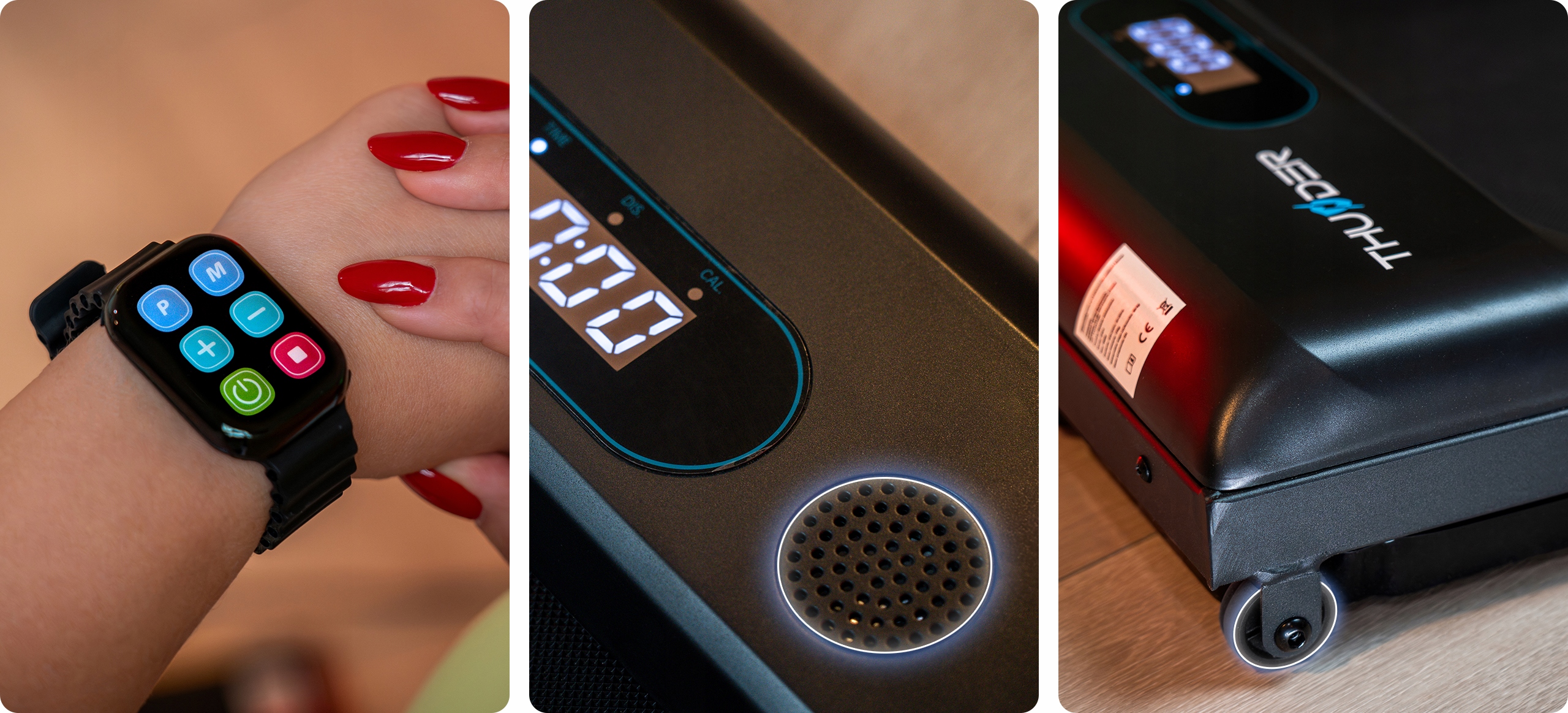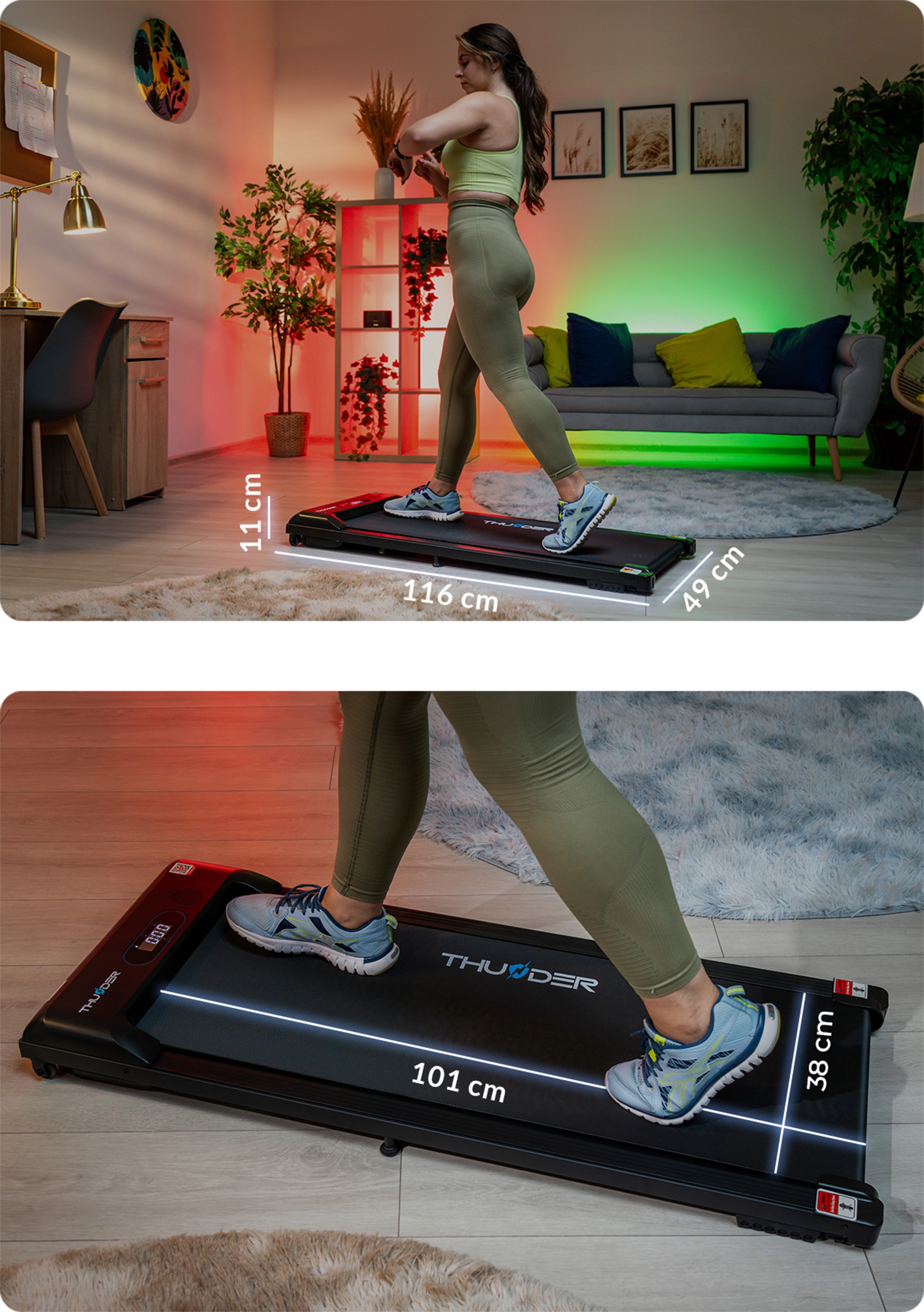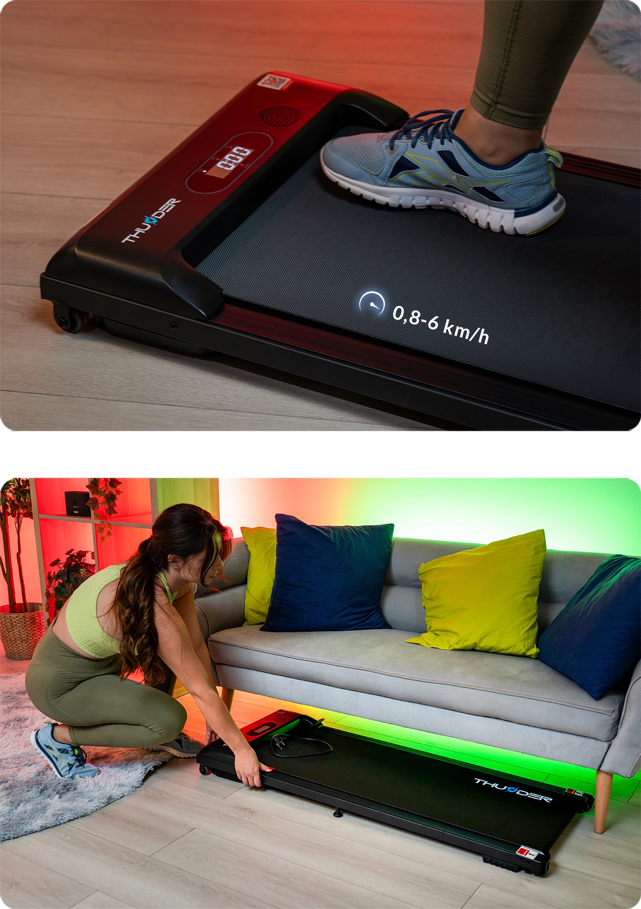 Iščete kompaktno, a hkrati napredno napravo za domačo vadbo? Tekalna steza THUNDER® IDEA je idealna rešitev, ki združuje udobje, funkcionalnost in sodobno tehnologijo ter zagotavlja učinkovito vsakodnevno vadbo.