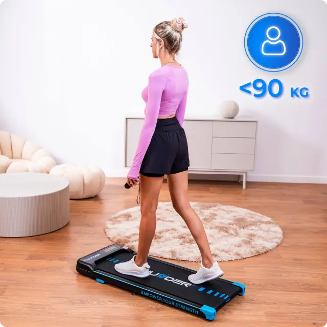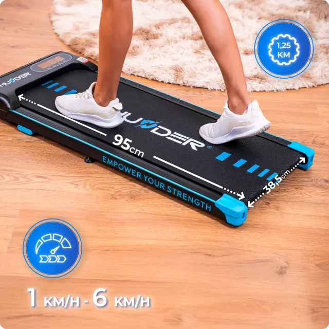 Električna pod-mizo tekalna steza THUNDER® KINDI – 6 km/h, 1,25 KM, ultratanka 9 cm, LED zaslon, Bluetooth, nosilnost 90 kg
