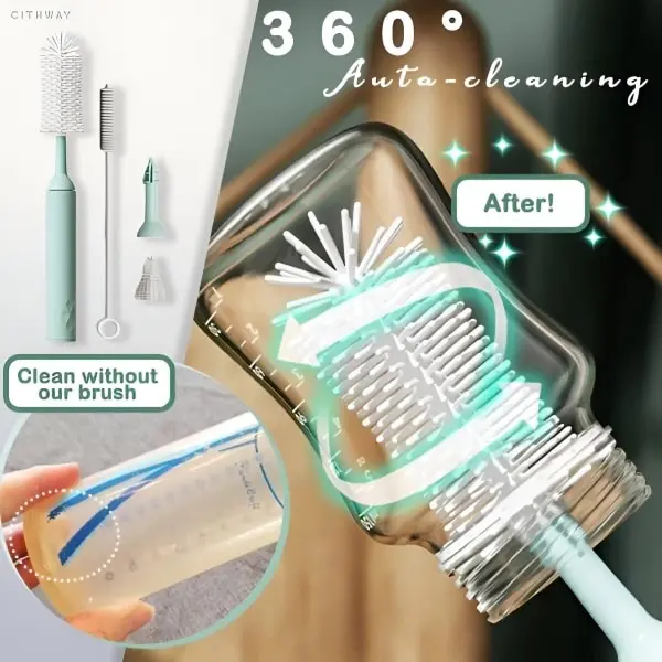 Vključuje ščetko za čiščenje stekleničk, ščetko za otroške dude ter tanko ščetko za čiščenje vseh otroških predmetov.