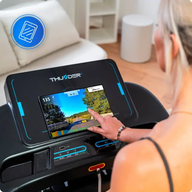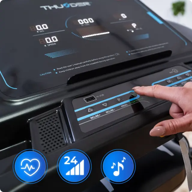 Električna tekalna steza THUNDER® ELITE-DS – 18 km/h, 2,5 KM, avtomatski naklon 18 stopenj, masažer, pas 50 cm, Bluetooth, LED 10", nosilnost 160