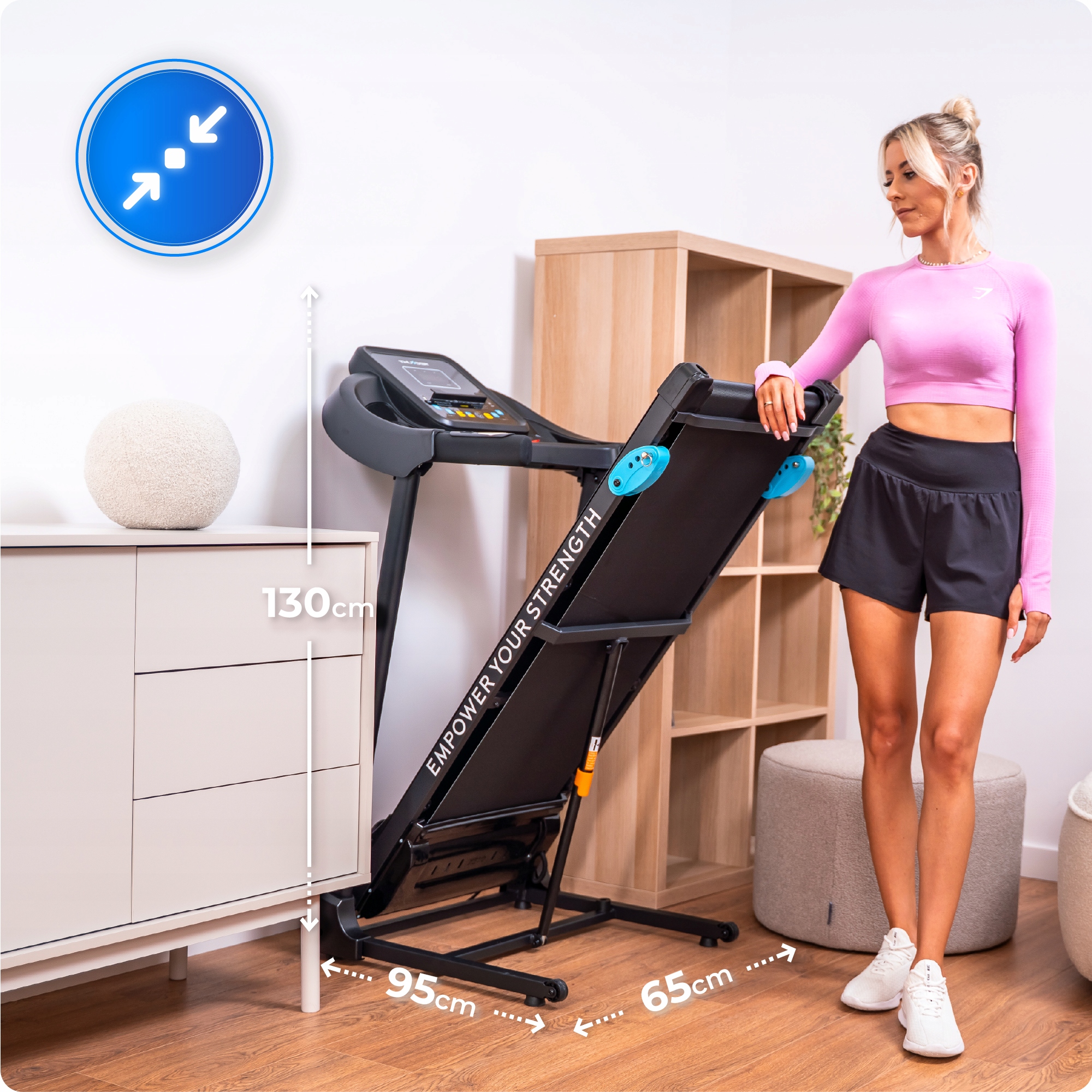 Zložene mere tekalne steze: 95 cm (D) x 65 cm (Š) x 130 cm (V)