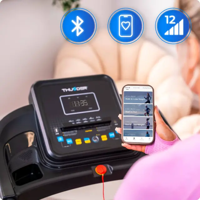 Električna tekalna steza THUNDER® G8000-D – 12,8 km/h, 2 KM, 3-stopenjski naklon 15%, masažer, Bluetooth, LCD 5", nosilnost 110 kg
