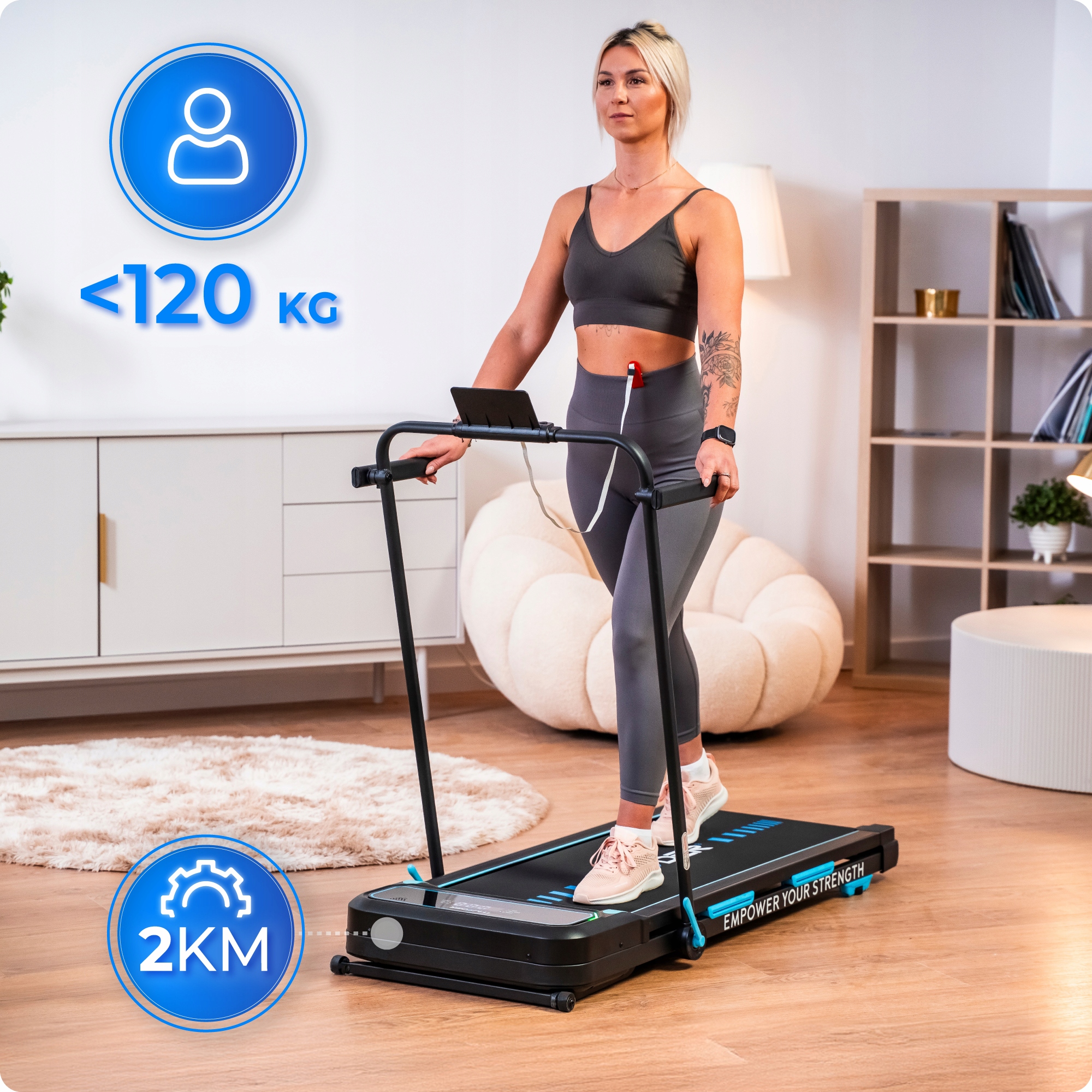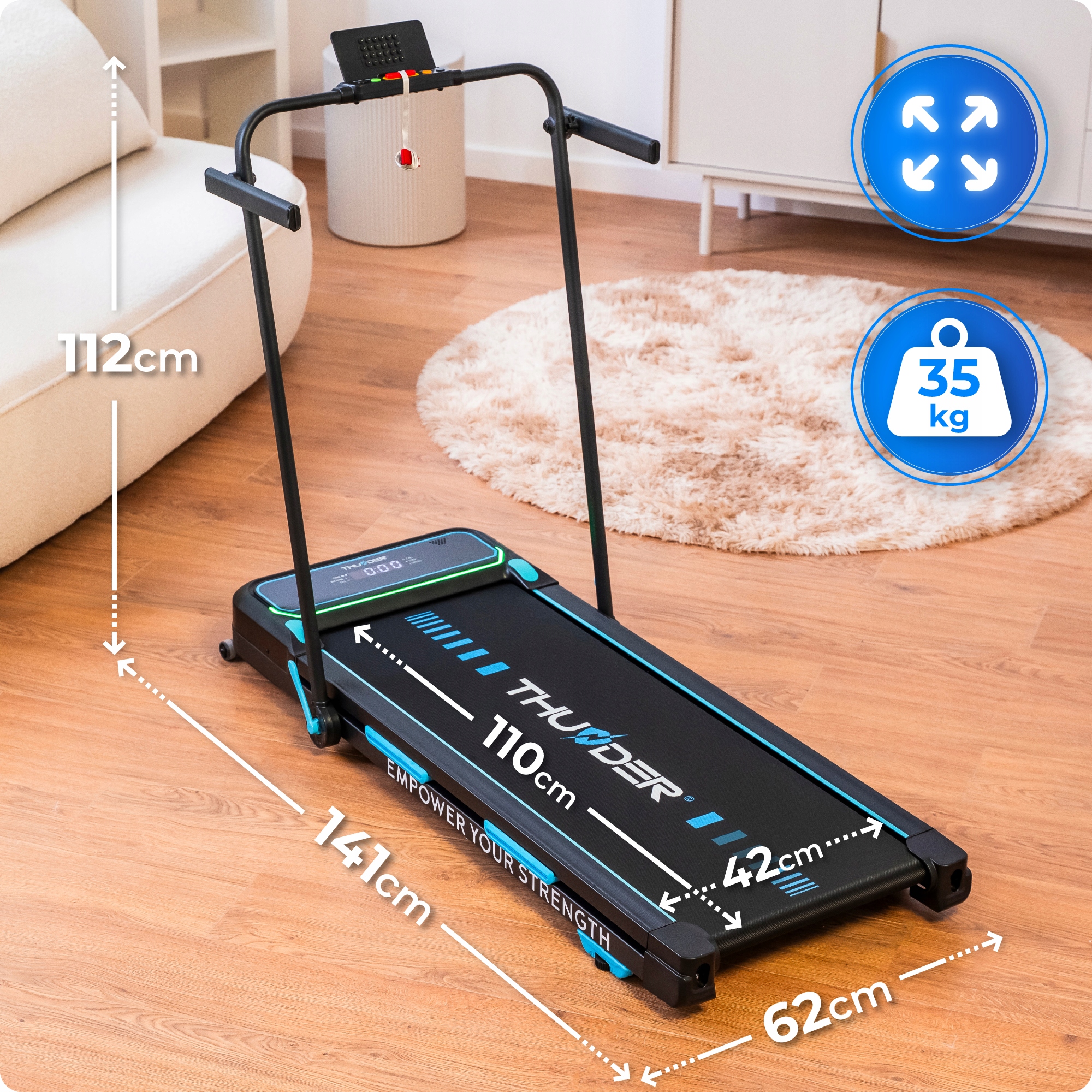 Iščete kompaktno, a hkrati sodobno napravo za domačo vadbo? Tekalna steza THUNDER VIVA-PRO združuje udobje, funkcionalnost in sodobne tehnologije ter zagotavlja učinkovito vadbo vsak dan.