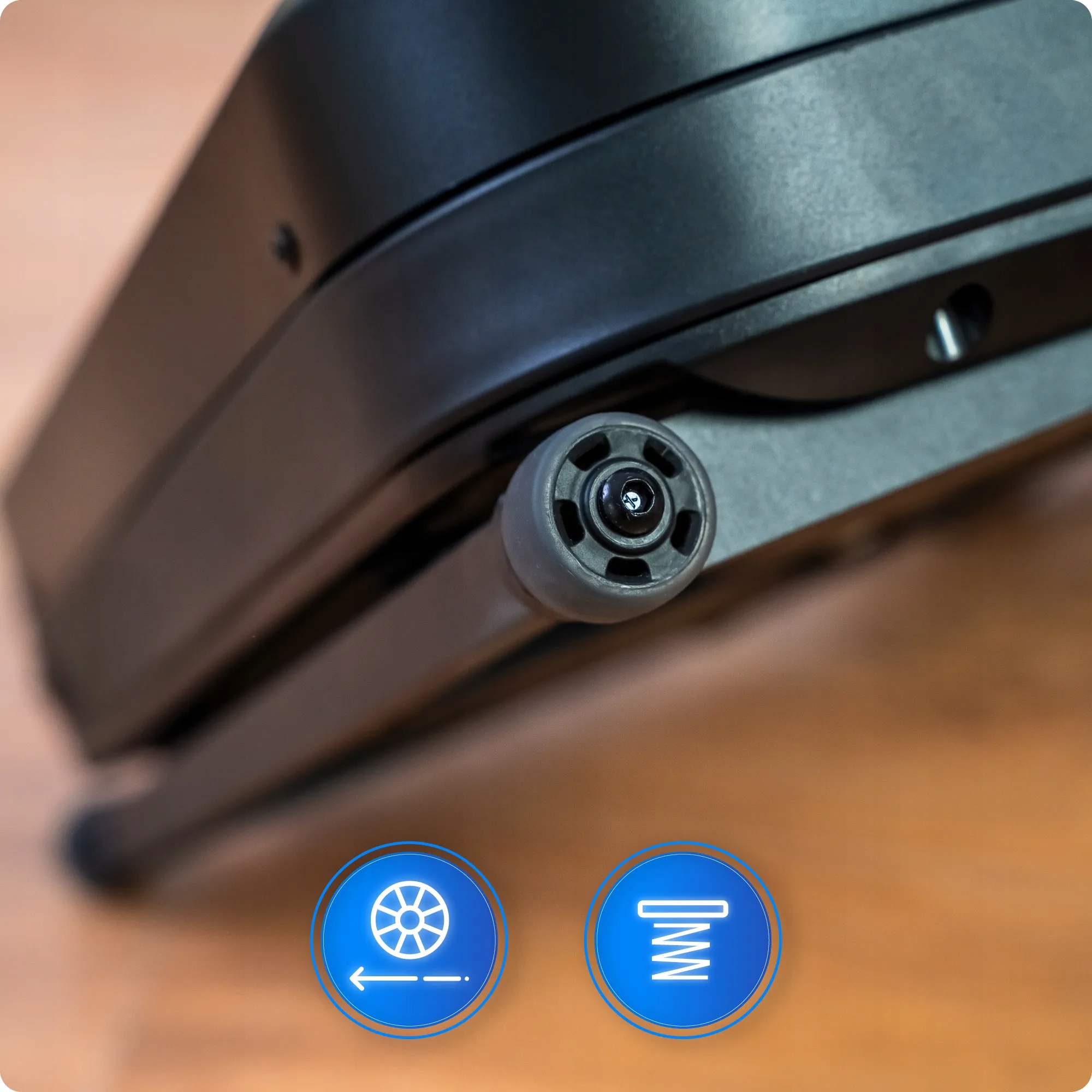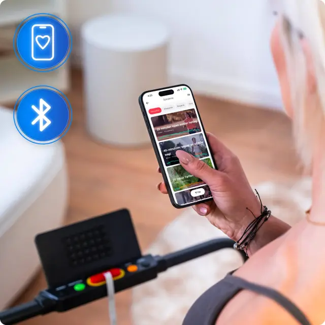 Magnetni varnostni ključ omogoča takojšnjo zaustavitev. Dodatno: držalo za pametni telefon s priseski za varen oprijem.