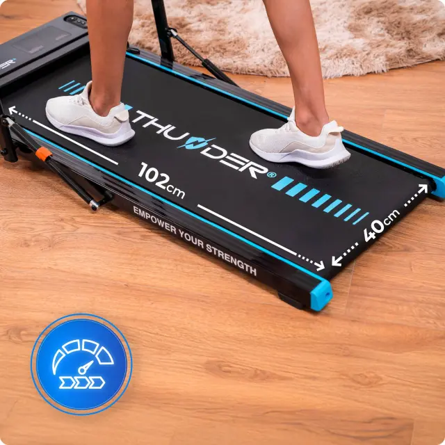 Električna zložljiva podposteljna tekalna steza THUNDER® VIVA-BLACK – 2v1, 8 km/h, 2 KM, 14 cm nizka zasnova, Bluetooth, nosilnost 110 kg