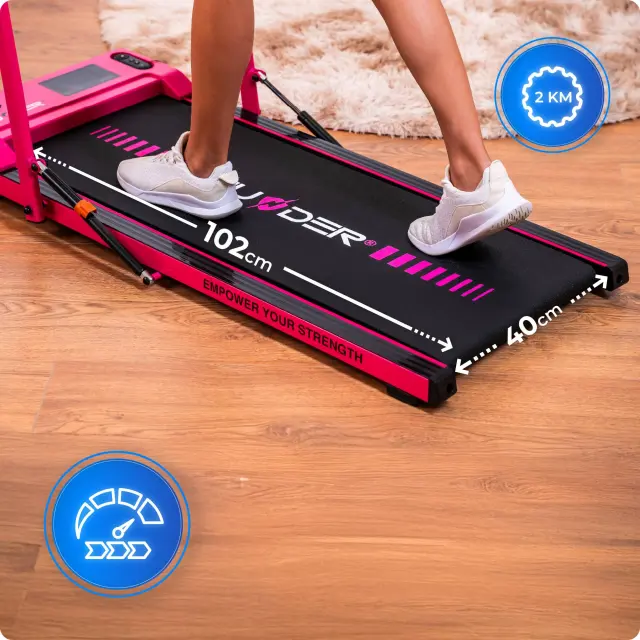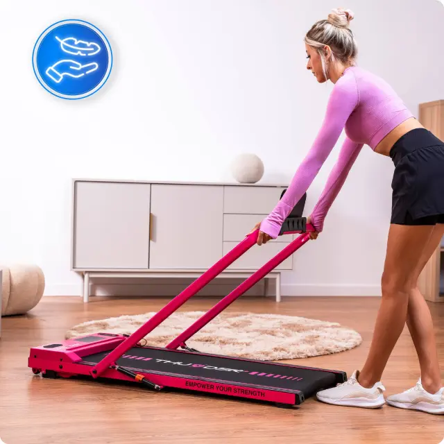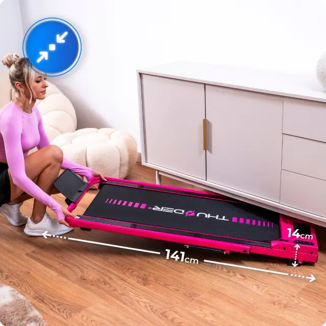 Električna zložljiva podposteljna tekalna steza THUNDER® VIVA-PINK – 2v1, 8 km/h, 2 KM, 14 cm nizka zasnova, Bluetooth, nosilnost 110 kg