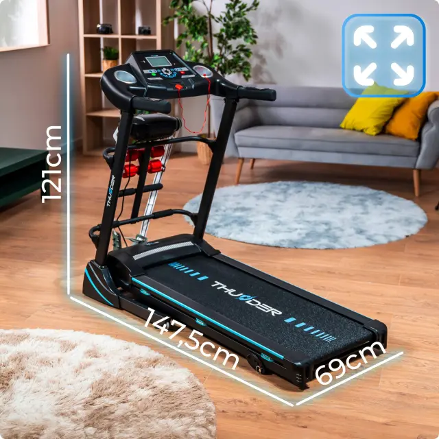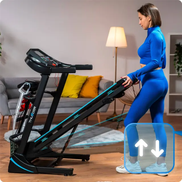 Električna zložljiva tekalna steza THUNDER® ICON-D-BLACK – masažer, 2 KM, 17 km/h, amortizacija, APP, nosilnost 140 kg