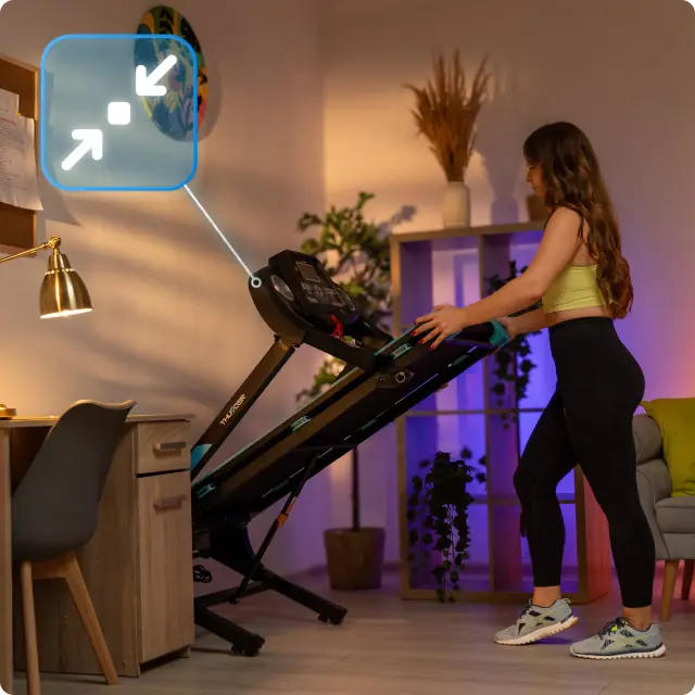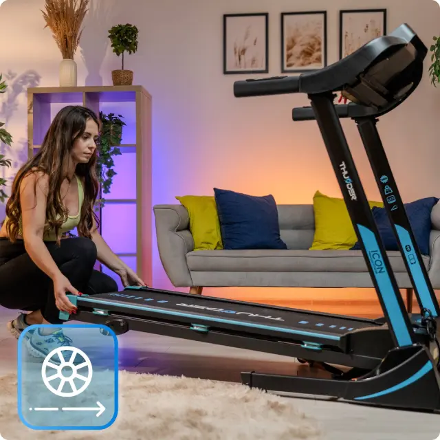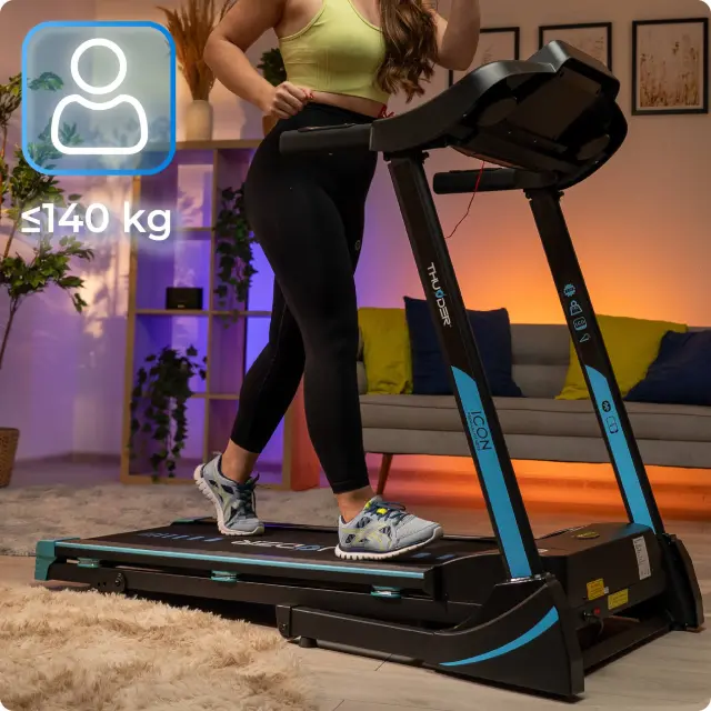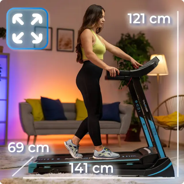 Električna zložljiva tekalna steza THUNDER® ICON-BLUE – do 17 km/h, 2 KM, LED zaslon, amortizacija, APP, nosilnost 140 kg
