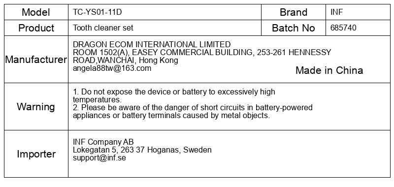Podatki o proizvajalcu vključujejo informacije (naziv, naslov, državo in elektronski naslov) povezane s proizvajalcem izdelka.