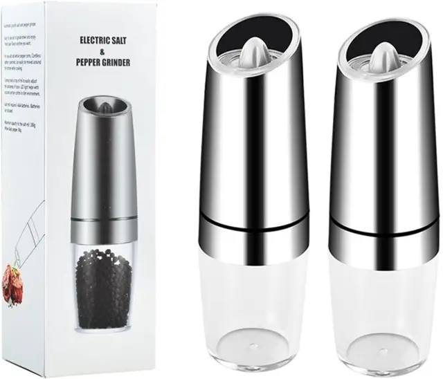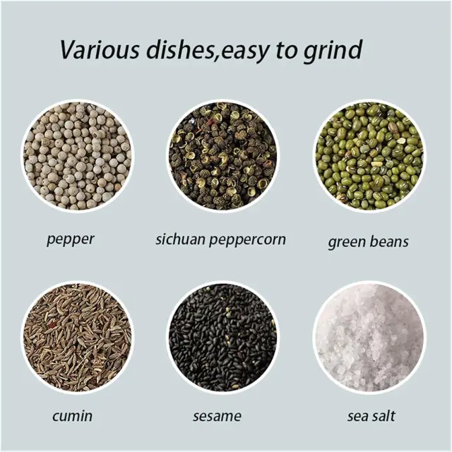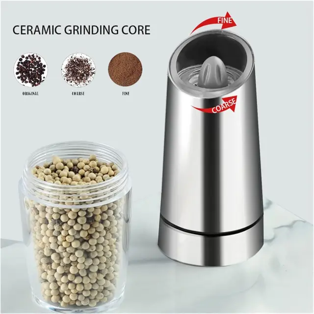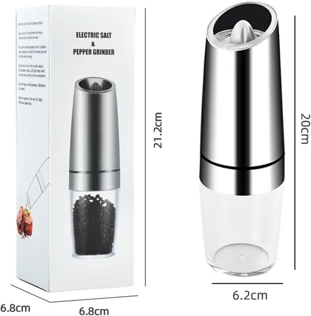 [Večnamenski] Uporabite majhen namizni mlinček kot mlinček za zrnje, mlinček za orehe, mlinček za poper, mlinček za sol ali večnamenski mlinček za začimbe v kuhinji MATERIALI: Naš komplet električnih mlinčkov za sol in poper bo pomagal povzdigniti skoraj vsako pripravljeno jed iz nerjavečega jekla, je vzdržljiv in se odlično brusi. Naredite svojim zapestjem veliko uslugo: naš inovativni dizajn z zaznavanjem gravitacije omogoča samodejno aktiviranje delovanja, kar zagotavlja enostavno doziranje, ne da bi morali pritisniti gumb; Avtomatski mlinček za poper sveti, ko ga nagnete; Oddaja sol ali poper; Zaradi tega je neboleč razpršilnik. Idealen za ljudi z artritisom, karpalnim kanalom in drugimi težavami s spretnostjo. ROMANTIČNA MODRA LED LUČ: Nič ne popestri romantične večerje ob svečah kot sveže mleta sol in poper; pomirjujoča modra LED lučka električnega mlinčka za sol poskrbi, da začimbe pristanejo na vaši hrani, kar bo zagotovo vznemirilo pogovore za večerjo z družino in prijatelji. NASTAVLJIVA ZRNA: z nastavljivimi nastavitvami za grobo in fino mletje bo vsak obrok začinjen do popolnosti, zrna soli ali črnega popra; Baterijski pogon za mletje soli in enota za mletje popra sta zasnovana tako, da delujeta gladko in brez napora, hkrati pa maksimalno izboljšata okus.
