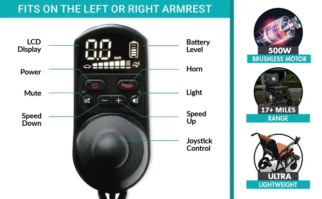 Prevzemite popoln nadzor nad svojo mobilnostjo s pomočjo inteligentnega digitalnega krmilnika (joystick), ki omogoča 360-stopinjsko upravljanje. Vgrajen LCD zaslon vam v realnem času prikazuje pomembne informacije o vožnji. Sistem je zasnovan za natančnost in uporabniku prijazno izkušnjo, kar omogoča lahkotno manevriranje tudi v tesnejših prostorih.