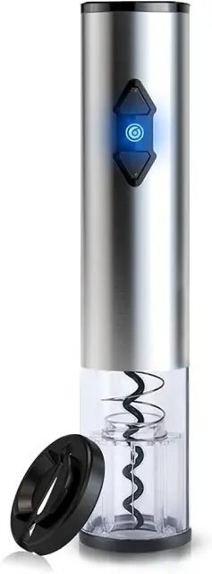 Elegantna zasnova - klasično ohišje iz nerjavečega jekla, spirala iz ogljikovega jekla in prozorno ohišje z osebnim računalnikom. Integrirana modra LED lučka samodejno sveti med delom. Ta samodejni zamašek zagotavlja viden postopek odpiranja in odlično uporabniško izkušnjo. (baterije niso vključene)