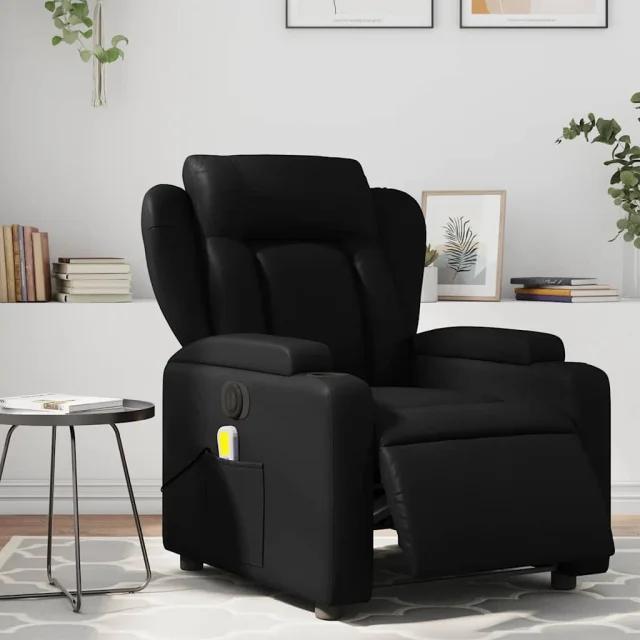 Električni masažni naslanjač - Relax naslanjač črno umetno usnje