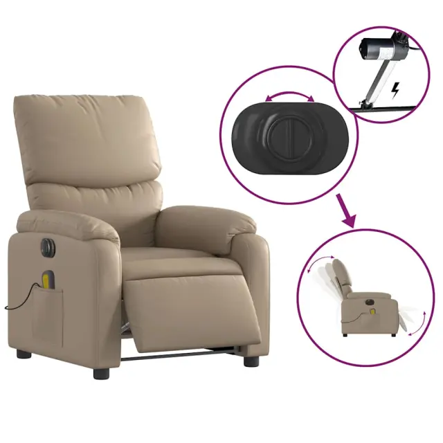 Električni masažni naslanjač - Relax naslanjač kapučino umetno usnje