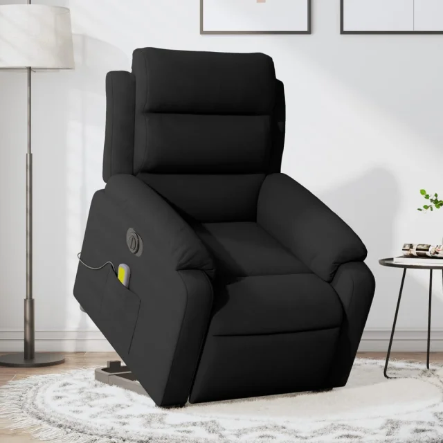 Električni masažni naslanjač - Relax naslanjač s funkcijo vstajanja črn žamet