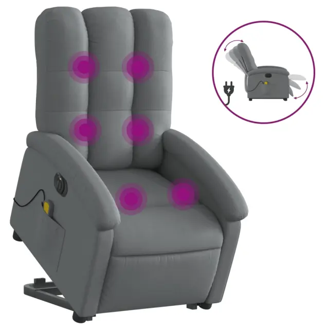 Električni masažni naslanjač - Relax naslanjač s funkcijo vstajanja temno siv