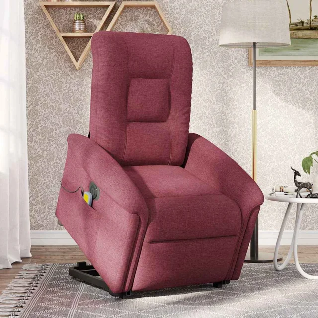 Električni masažni naslanjač - Relax naslanjač s funkcijo vstajanja vinsko rdeč
