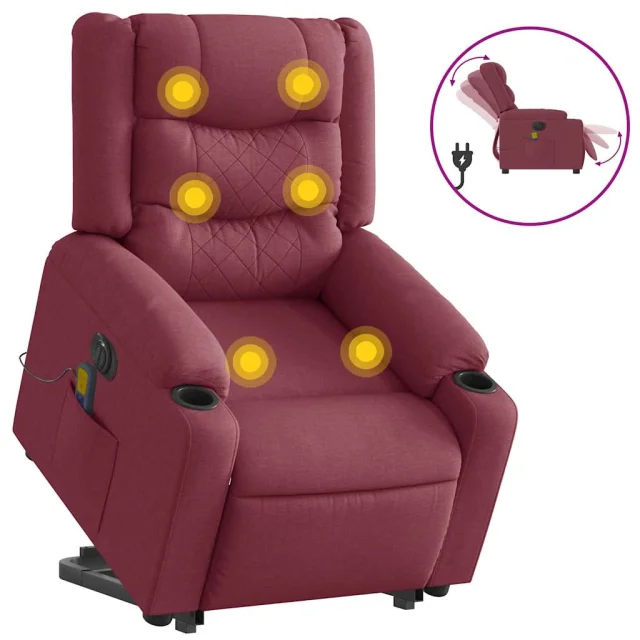 Električni masažni naslanjač - Relax naslanjač s funkcijo vstajanja vinsko rdeč