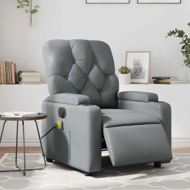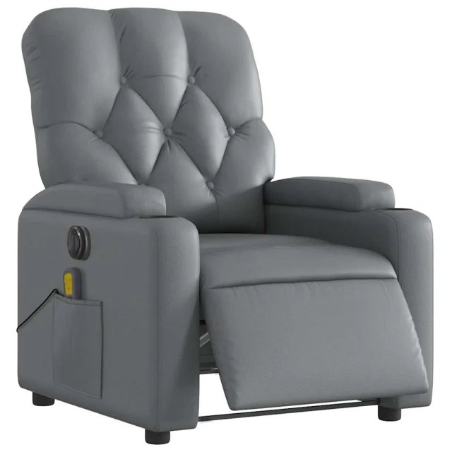Električni masažni naslanjač - Relax naslanjač sivo umetno usnje