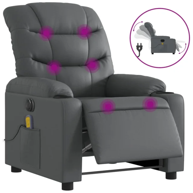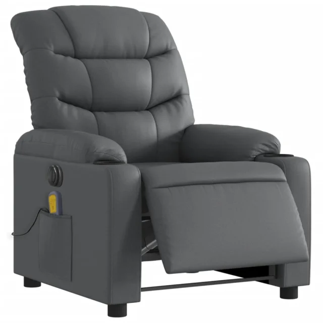 Električni masažni naslanjač - Relax naslanjač sivo umetno usnje