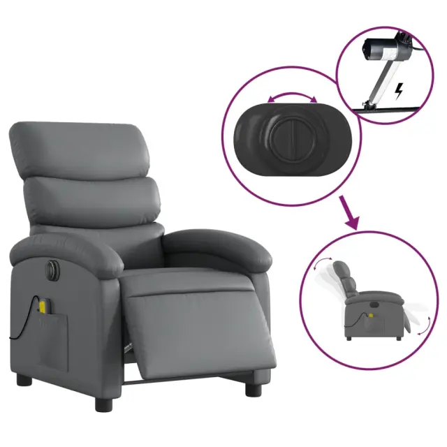 Električni masažni naslanjač - Relax naslanjač sivo umetno usnje