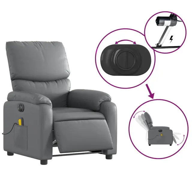 Električni masažni naslanjač - Relax naslanjač sivo umetno usnje