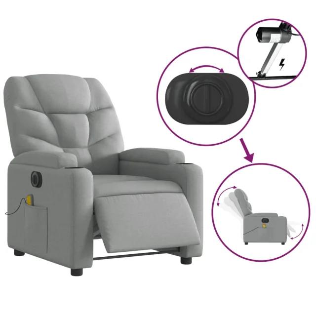 Električni masažni naslanjač - Relax naslanjač svetlo sivo blago