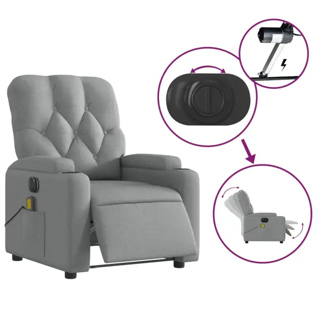 Električni masažni naslanjač - Relax naslanjač svetlo sivo blago