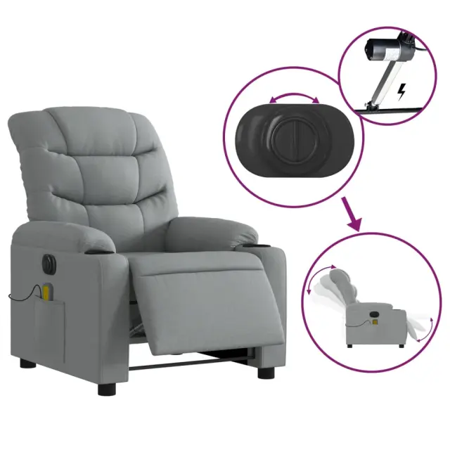 Električni masažni naslanjač - Relax naslanjač svetlo sivo blago
