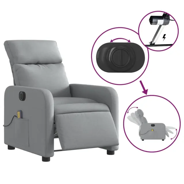 Električni masažni naslanjač - Relax naslanjač svetlo sivo blago