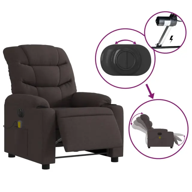 Električni masažni naslanjač - Relax naslanjač temno rjavo blago
