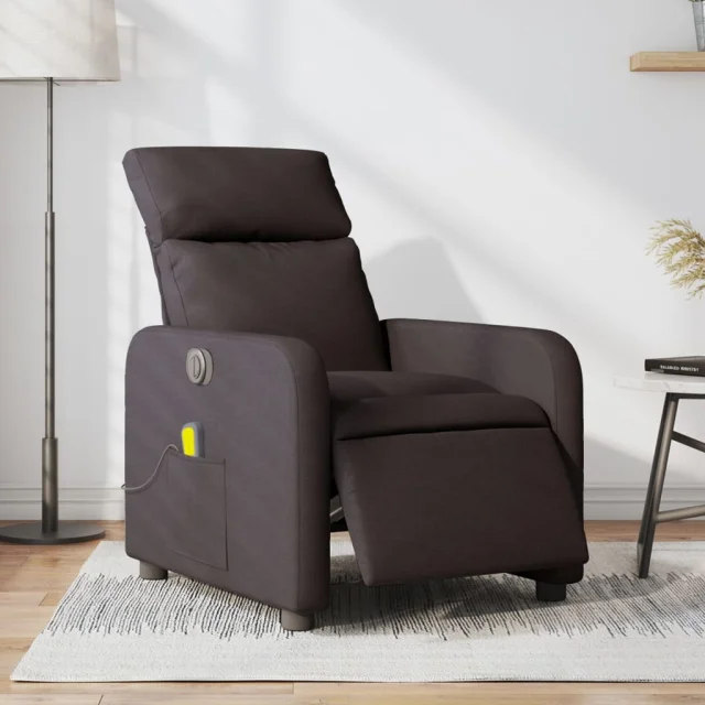 Električni masažni naslanjač - Relax naslanjač temno rjavo blago
