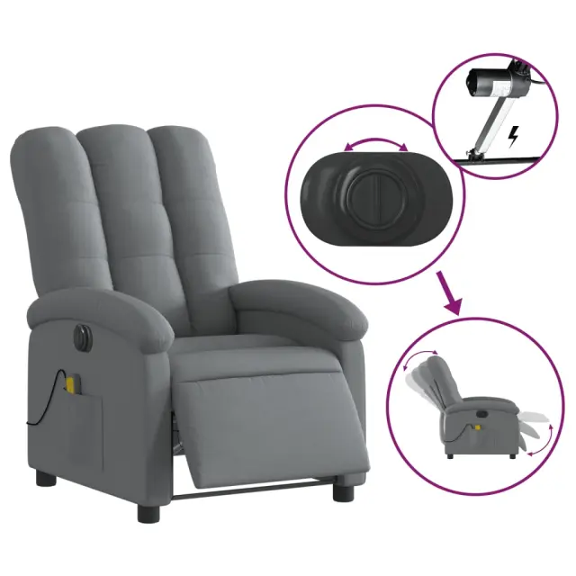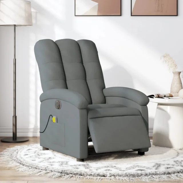 Električni masažni naslanjač - Relax naslanjač temno sivo blago