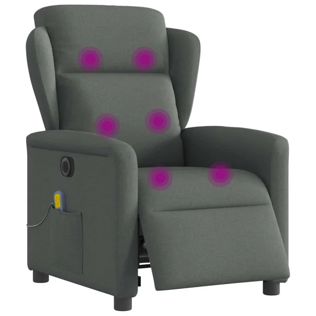 Električni masažni naslanjač - Relax naslanjač temno sivo blago