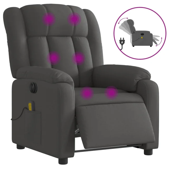 Električni masažni naslanjač - Relax naslanjač temno sivo blago