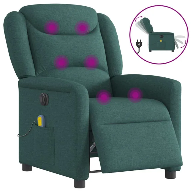 Električni masažni naslanjač - Relax naslanjač temno zeleno blago