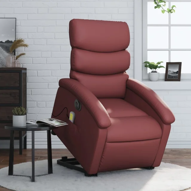 Električni masažni stol - Relax naslanjač s funkcijo vstajanja rdeče umetno usnje