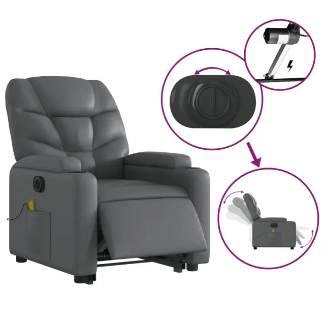 Električni masažni stol - Relax naslanjač s funkcijo vstajanja sivo umetno usnje