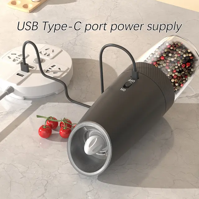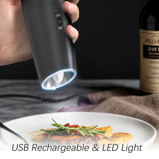 USB za polnjenje in LED lučka: opremljen z vgrajeno litijevo baterijo za ponovno polnjenje, ta komplet mlinčkov za poper se napaja prek vrat USB Type-C. LED lučka sveti med mletjem, kar vam omogoča, da spremljate količino začimb in vsakič zagotovite popolne rezultate.