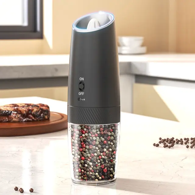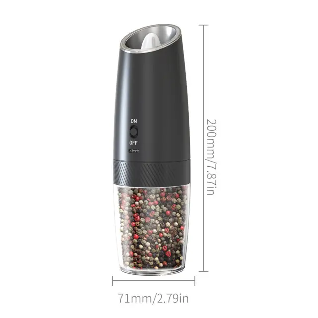 Gravitacijsko mletje: Enostavno nagnite električni mlinček za poper, da aktivirate mehanizem za mletje in brez težav začinite jedi z eno roko. Ni gumbov, ki bi jih morali pritisniti, kar zagotavlja gladko in priročno kuhanje.