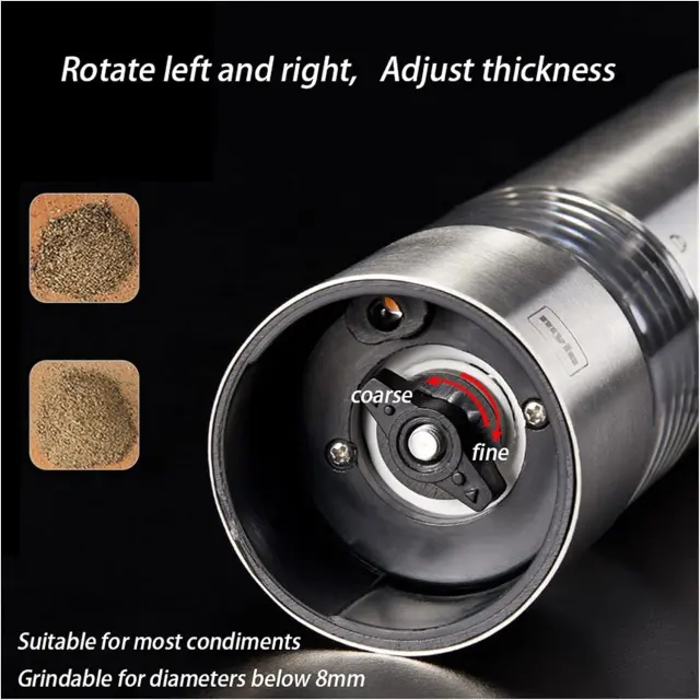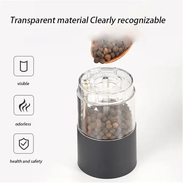 [Večnamenski] Uporabite majhen namizni mlinček kot mlinček za zrnje, mlinček za orehe, mlinček za poper, mlinček za sol ali večnamenski mlinček za začimbe v kuhinjiMaterial: Električni mlinček za sol in poper uporablja postopek ščetkanja površin iz nerjavečega jekla in ABS , keramično jedro in je najvišjega razreda. Vidno: ABS prozorna skodelica, lahko neposredno vidite stanje notranjega brušenja. Prosto nastavite debelino. Časovna funkcija: čas mletja, čas določite sami, čas mletja lahko nastavite tako, da ohranite navade kuharja. VGRAJENA LUČ: Ta izvrstni pripomoček, opremljen z LED-lučjo, osvetli vašo hrano med barvanjem , tudi v temnem okolju, in vam lahko pomaga natančno vedeti, koliko soli ali popra je bilo umazanega.