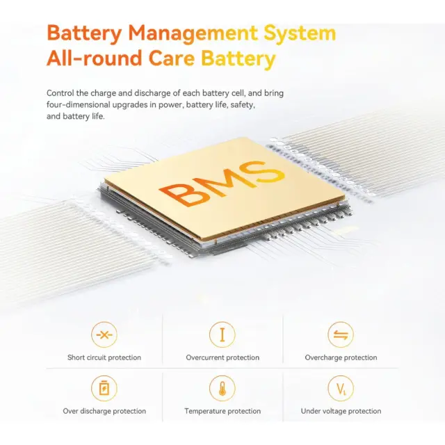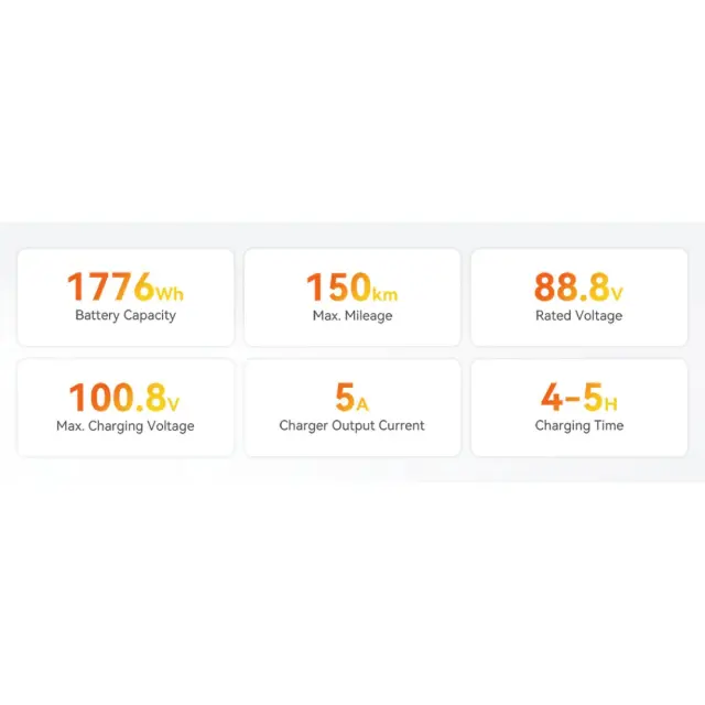 Doživite svobodo z ogromno baterijo kapacitete 1776 Wh, sestavljeno iz vrhunskih celic Samsung 50S 21700. Te celice ponujajo višjo gostoto energije in boljšo zmogljivost polnjenja/praznjenja, delujejo pri nižji temperaturi in zagotavljajo minimalen upad napetosti. Za varnost in dolgo življenjsko dobo skrbi pametni sistem za upravljanje baterije (BMS), ki nudi celovito zaščito pred kratkim stikom, prekomernim tokom, prenapolnjenostjo, prekomernim praznjenjem in temperaturnimi nihanji.