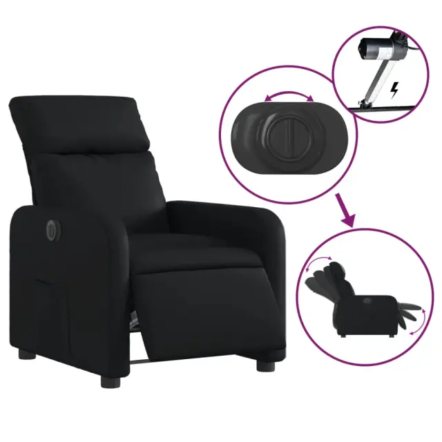 Električni naslanjač - Relax naslanjač črno umetno usnje