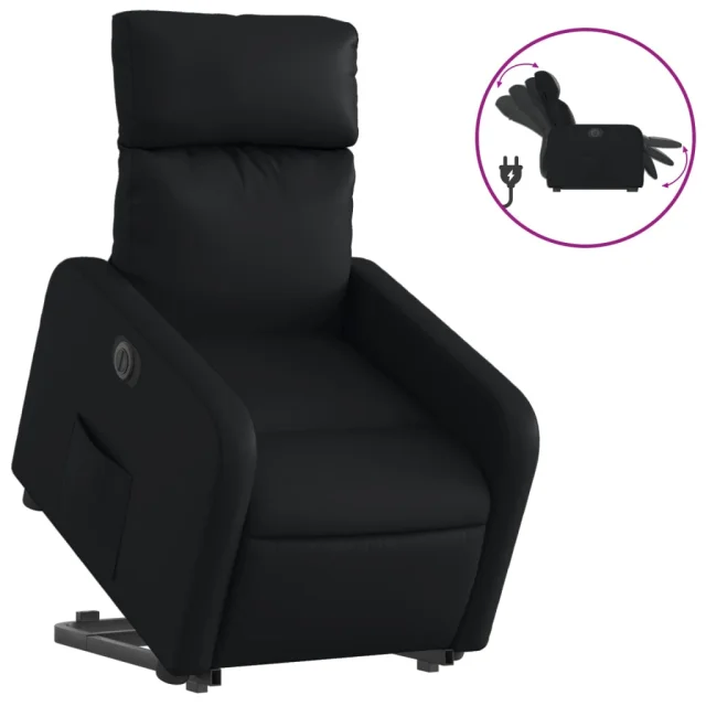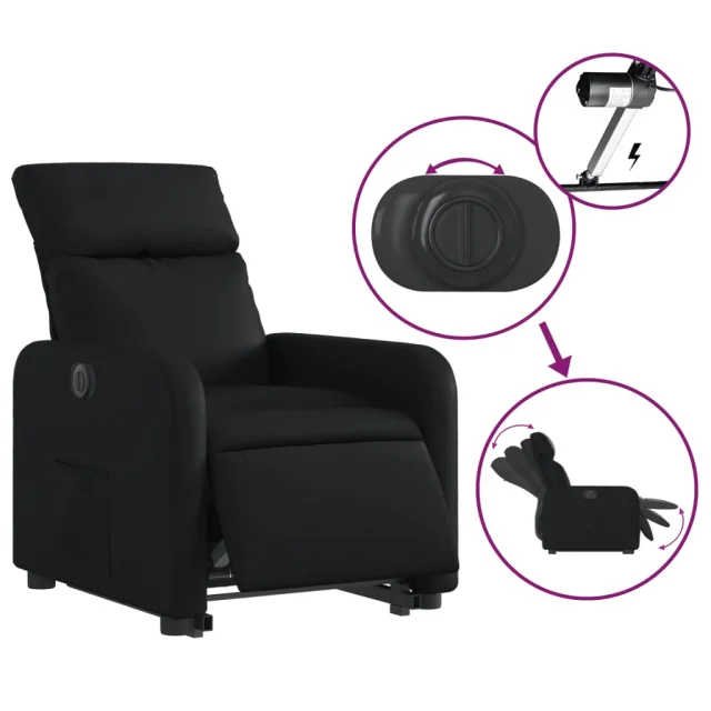 Električni naslanjač - Relax naslanjač s funkcijo vstajanja črno umetno usnje