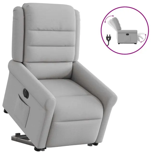 Električni naslanjač - Relax naslanjač s funkcijo vstajanja svetlo siv blago