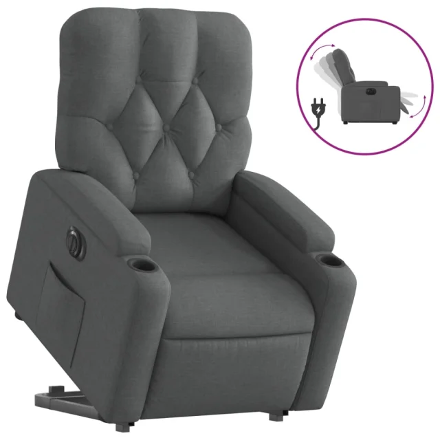 Električni naslanjač - Relax naslanjač s funkcijo vstajanja temno siv