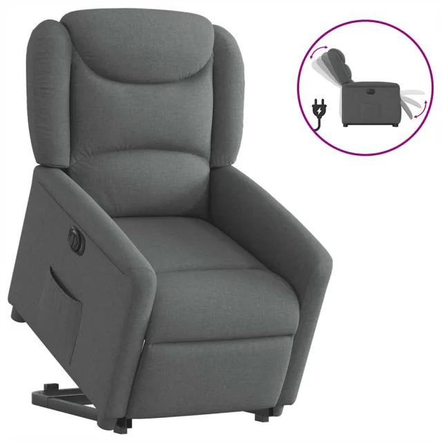 Električni naslanjač - Relax naslanjač s funkcijo vstajanja temno siv